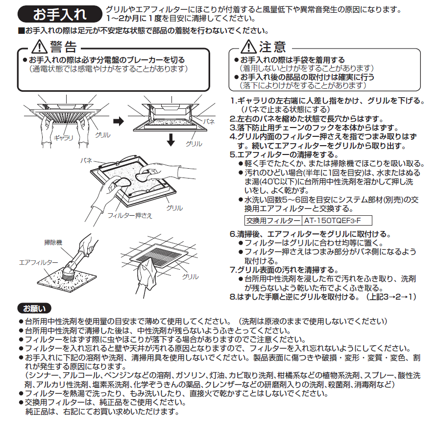 【AT-150TQEF3-F】電動給気シャッター(天井埋込タイプ)交換用フィルター 材質:不織布フィルター (ホワイト)捕集率約75%(質量法) 粉塵・花粉対策一辺:約195㎜※AT-150TQEF2-F65 / AT-150TQEF2-F82 からモデルチェンジしました。 販売価格 1,870円(税込み) 会員価格 (税込み) 通常価格 1,870円(税込み) JANコード 数量 - + カートに入れる 形名 AT-150TQEF3-F ・商品形名/数量お間違いないようにご注意願います。 ・ヤマト運輸の宅急便にてお届け致します。 ・運送事情により発送・配達の遅れが発生する場合がございます。・この製品は日本国内用ですので日本国外では使用できません。また日本国外ではアフターサービスもできません。 商品一覧Category 丸形フィルター AT-100QNKT-F AT-100QNM-F AT-150QNU2-F 丸形フィルター(穴有り) AT-100QRKF2-F AT-100QRKF3-F AT-100QRKF4-F AT-100QRKN2-F AT-100QRKN3-F AT-100QRKN4-F AT-100QRKX3-F AT-100QRKX4-F AT-100QRKXF2-F AT-150QRKF2-F AT-150QRKF3-F AT-150QRKF4-F AT-150QRKN2-F AT-150QRKN3-F AT-150QRKN4-F AT-150QRKX3-F AT-150QRKX4-F AT-150QRKXF2-F AT-100QRKP4-F AT-150QRKP4-F 角形フィルター AT-100F-NF AT-100QK3-F AT-100QKF2-F AT-100QKSF3-F AT-100QNU-F AT-100QNUX-F AT-150QEF2-F AT-150QEF4-F AT-150QK3-F AT-150QKF2-F AT-150TQEF2-F65 AT-150TQEF2-F82 AT-150TQEWF-F AT-150TQEWN-F AT-200QK3-F AT-200QKF2-F AT-50QKF-F AT-50QUK-F AT-75QNU-F AT-150TQEWF2-F AT-150TQEF3-F 角形フィルター(穴有り) AT-100QNK-F AT-100QNKX-F その他フィルター AT-150QSF 部品 AT-100QH2 AT-150QH2 AT-100QRK3-U AT-150QRK3-U AT-150QSU2-U スモークダッシュ用フィルター BP-200SF BP-200DF BP-300SDF 業務用空気清浄機用交換フィルター WQ-200SF 業務用ロスナイ用・単独脱臭ユニット用 脱臭フィルター AT-10DF AT-15DF AT-25DF AT-30DF バス乾燥・暖房・換気システム用フィルター ATP-14BF フィルターの商品一覧 フィルターの特徴・効果とお手入れのしかた 2026年04月 日 月 火 水 木 金 土 1 2 3 4 5 6 7 8 9 10 11 12 13 14 15 16 17 18 19 20 21 22 23 24 25 26 27 28 29 30 2026年05月 日 月 火 水 木 金 土 1 2 3 4 5 6 7 8 9 10 11 12 13 14 15 16 17 18 19 20 21 22 23 24 25 26 27 28 29 30 31 休業日